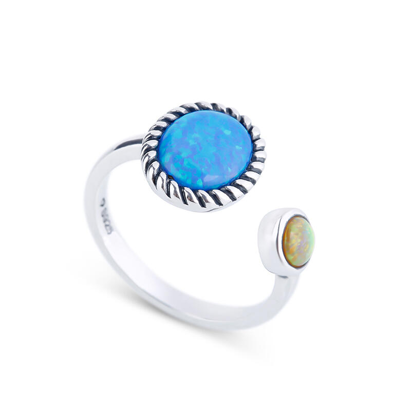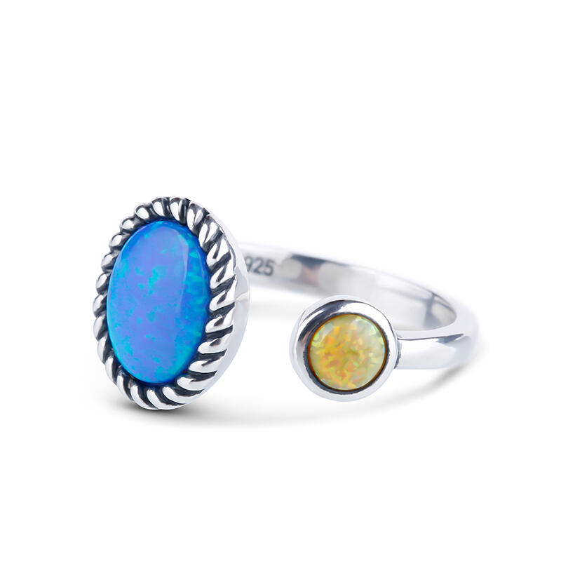 Two opal stones in different colors are showcased in this ring representing couples in love will be together always and forever.