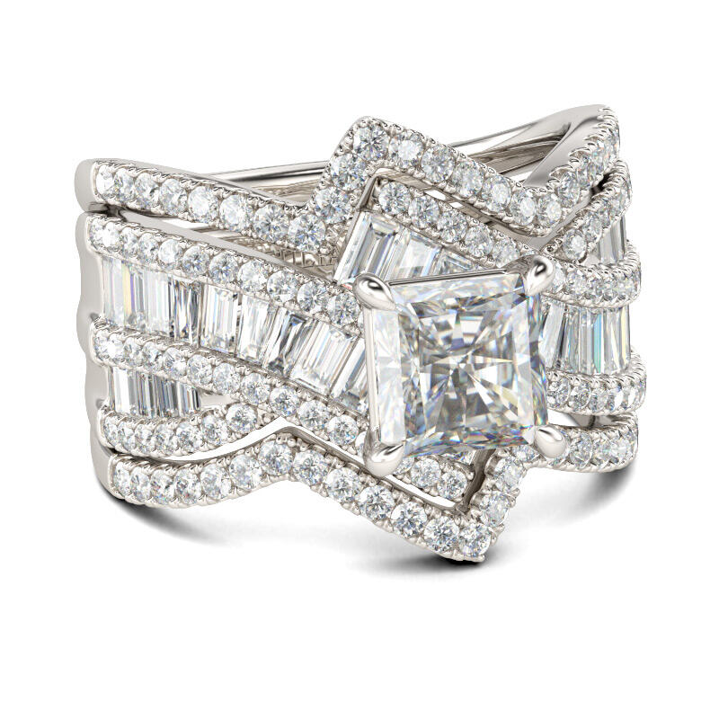 Jeulia Bypass Princess Cut Enhancer Sterling Silver Ring