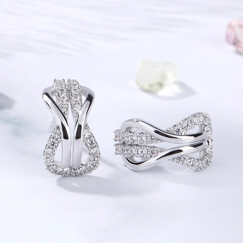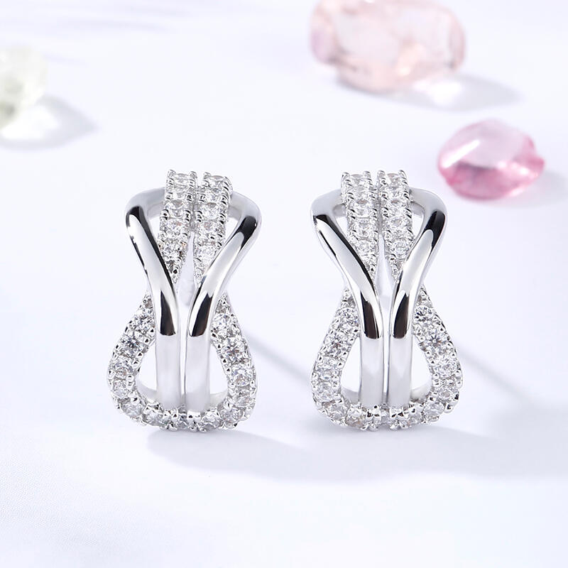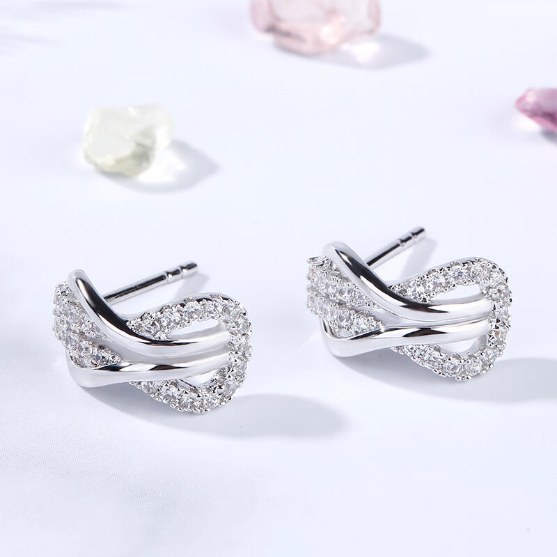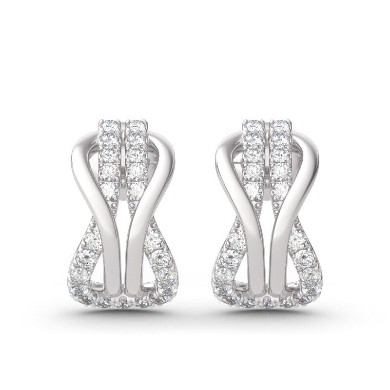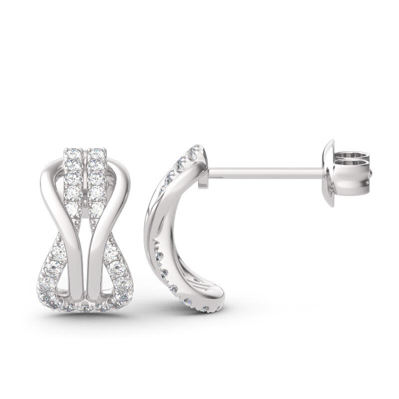 A brilliant way to show her your love is forever, these dainty earrings will certainly touch her heart. This meaningful design showcases two ribbons interlocked for a infinity symbol-shaped look, while shimmering round stones add eye-catching sparkle to the design. These elegant earrings make a stunning statement of everlasting love. A great anytime choice, they are sure to become an instant favorite.