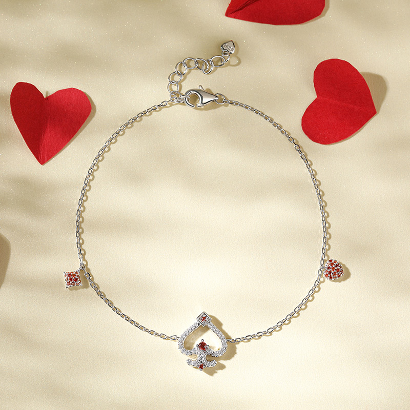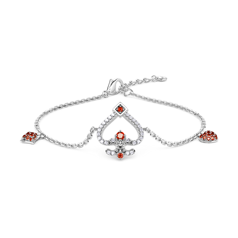 You'll love the fun shape of this Ace of Spades bracelet. It is inspired by the mysterious world of Ace symbols. This must-have bracelet elegantly combine sparkling stones with a silver spade design, perfect for adding a touch of sparkle and glamor to any outfit.