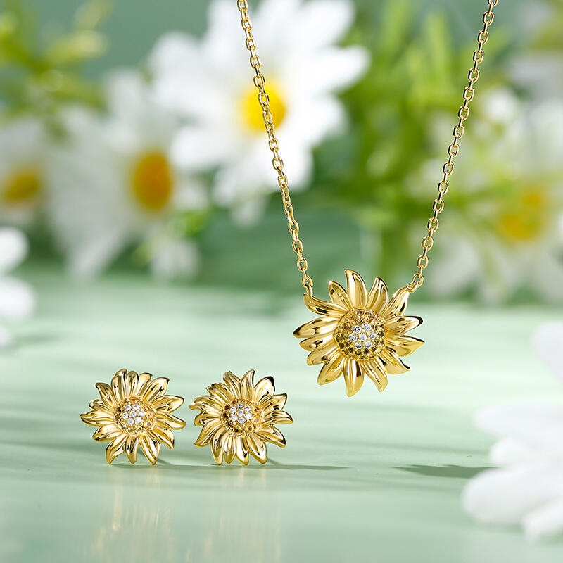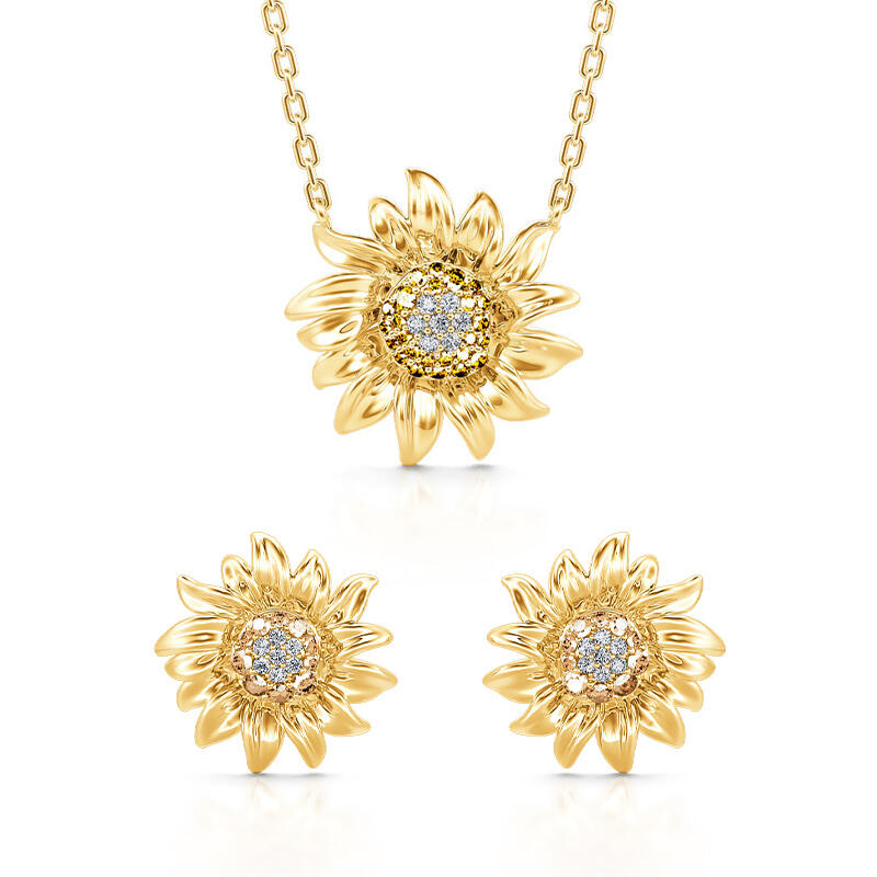 Jeulia "Sunshine" Sunflower Sterling Silver Jewelry Set