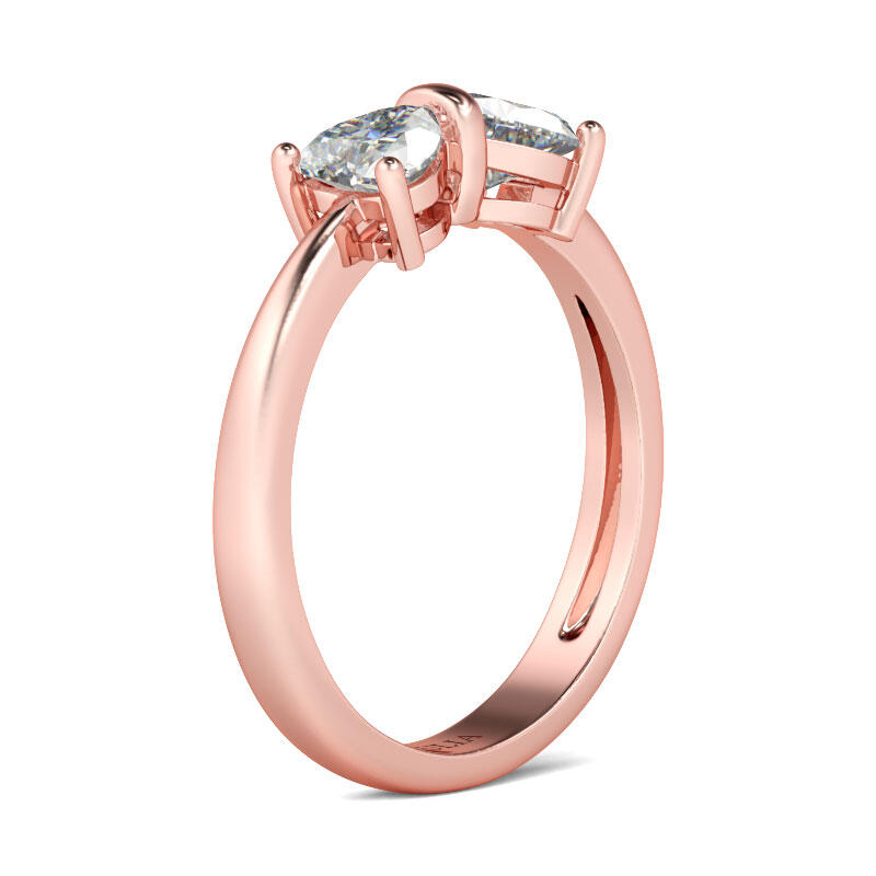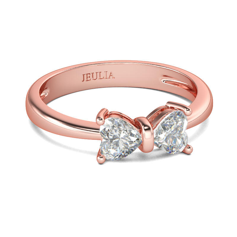 Simple but not plain, this ring makes a little lovely gift for loved one or yourself. Crafted in rose gold tone sterling silver, this ring is topped with a bowknot-shaped frame set with two heart cut stones. Pledge your affection with this glittering gift of love. It won't disappoint you.