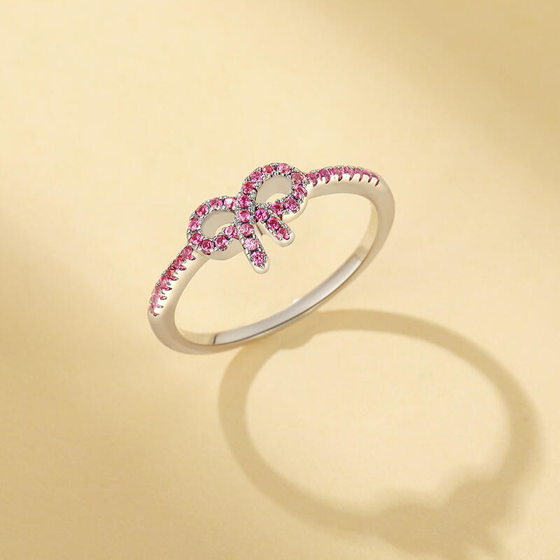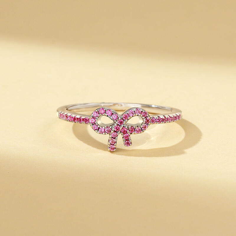 Jeulia Chic Thin Arm Bow Ring Sterling Silver Pave Setting