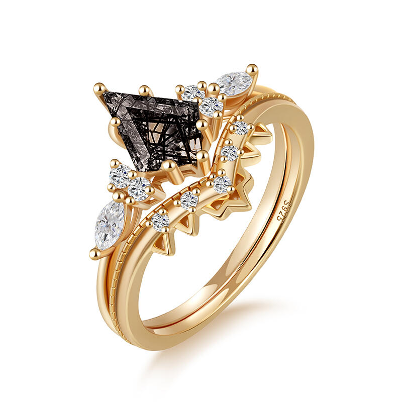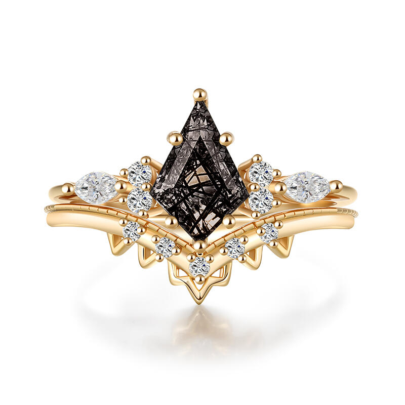 Jeulia Classic Kite Cut Black Rutilated Quartz Ring Set