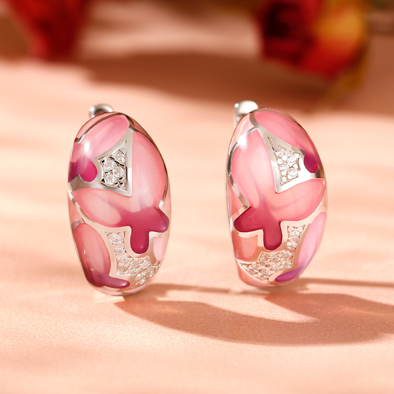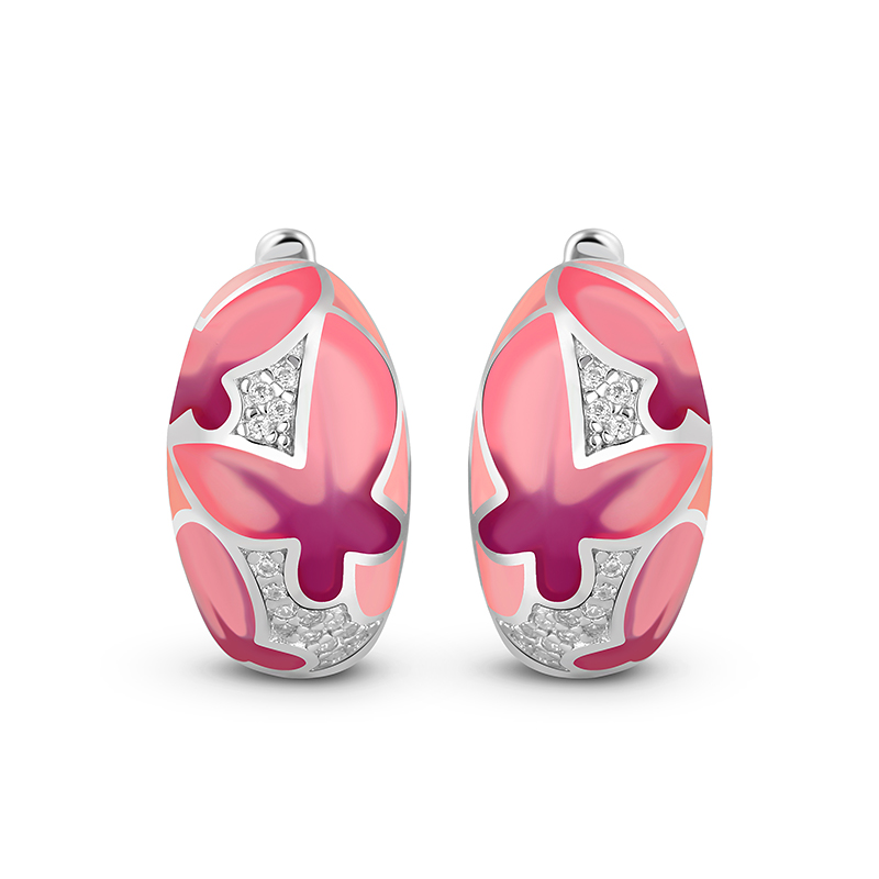 Jeulia "Colorful Butterfly" Enamel Sterling Silver Hoop Earrings