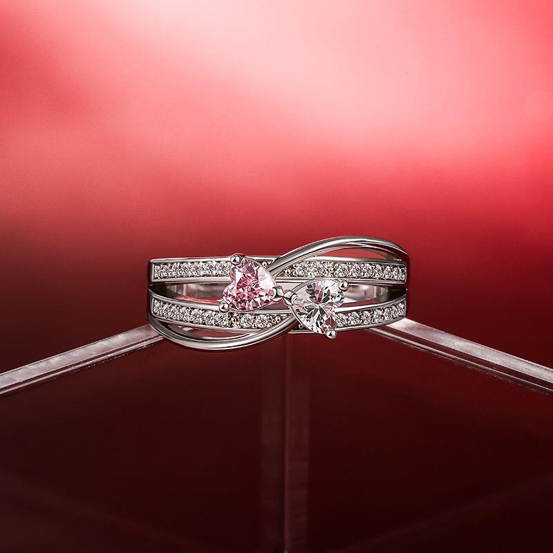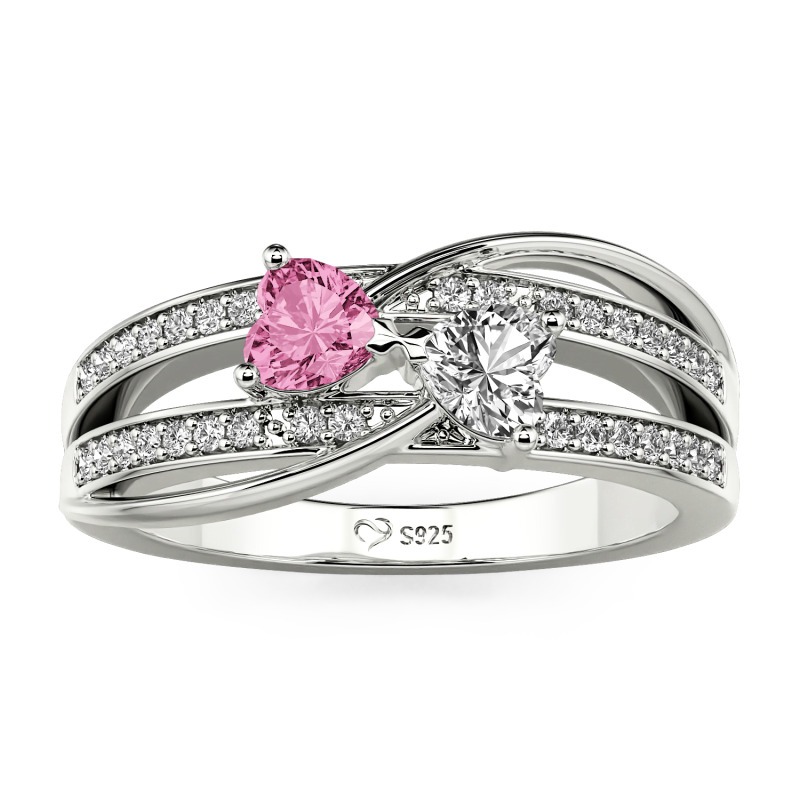 The Jeulia Custom Twist Double Heart Bow Ring is a stunning symbol of love and connection, perfect for celebrating special moments. Crafted from high-quality sterling silver, this bow ring features two beautifully designed heart-shaped stones, which can be customized in your choice of colors. The elegant bow twist design represents the unbreakable bond between partners, while the band is adorned with shimmering stones that add extra sparkle and sophistication. What makes this double heart ring truly special is the ability for customization—you can select the heart stones' colors to reflect your unique story, creating a piece that's as individual as your love. Ideal for engagements, anniversaries, or as a heartfelt gift, this 2 hearts promise ring is a timeless representation of lasting affection.