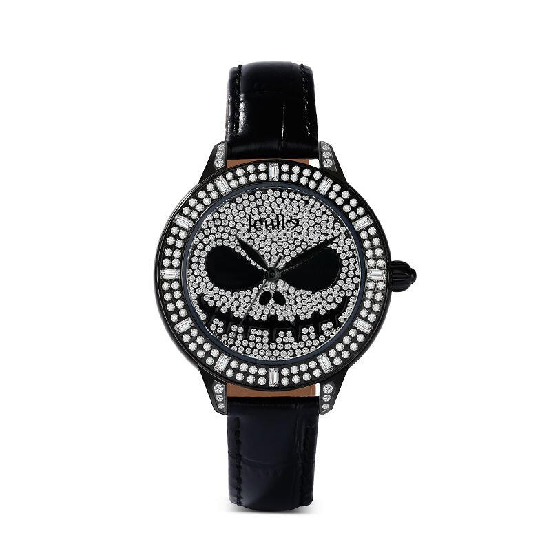 Jeulia "Demon of Light" Skull Design Quartz Black Leather Women's Watch