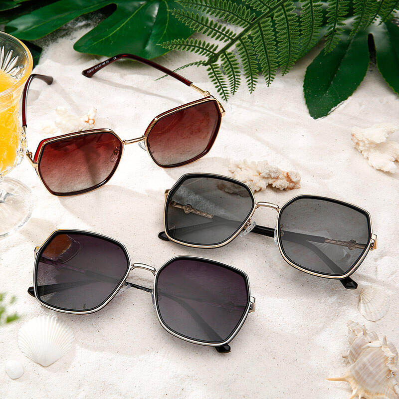 Dazzle in the sunshine with this elegant pair of sunglasses. Inspired by the modern feminine beauty, this hexagon sunglasses give radiate elegance, generosity, and passionate fashion. Combinations of metal and TR material, paired with TAC polarized lenses, create durable quality and unmatched views. The iconic flowers on the side of the frame complete this graceful style.