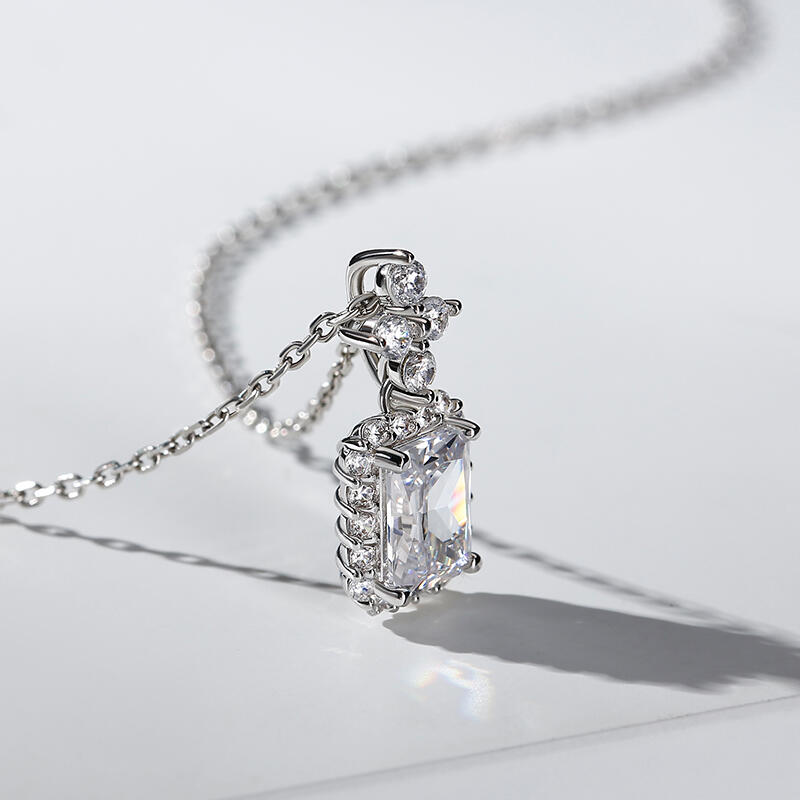 Dazzling stones are always an excellent choice and she'll absolutely adore this delightful necklace. The pendant features a radiant-cut center stone wrapped in a halo of shimmering round stones, which shows a really exquisite look. All the stones sparkle perfectly from every angle, making this necklace an eye-catcher everywhere.