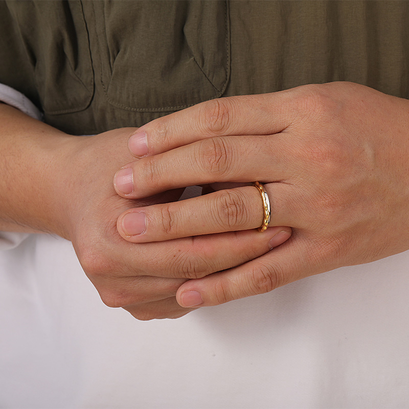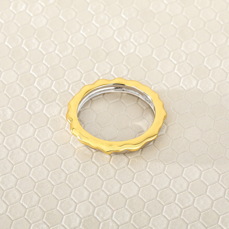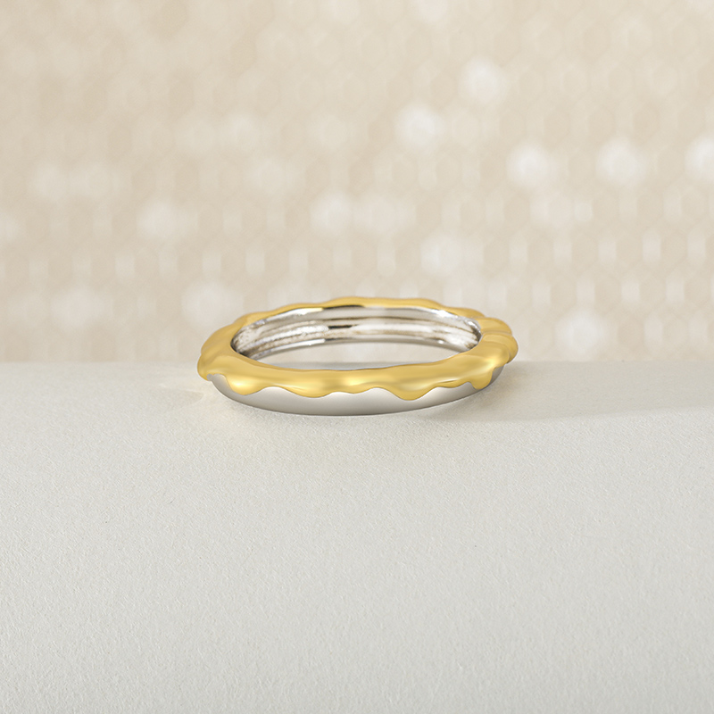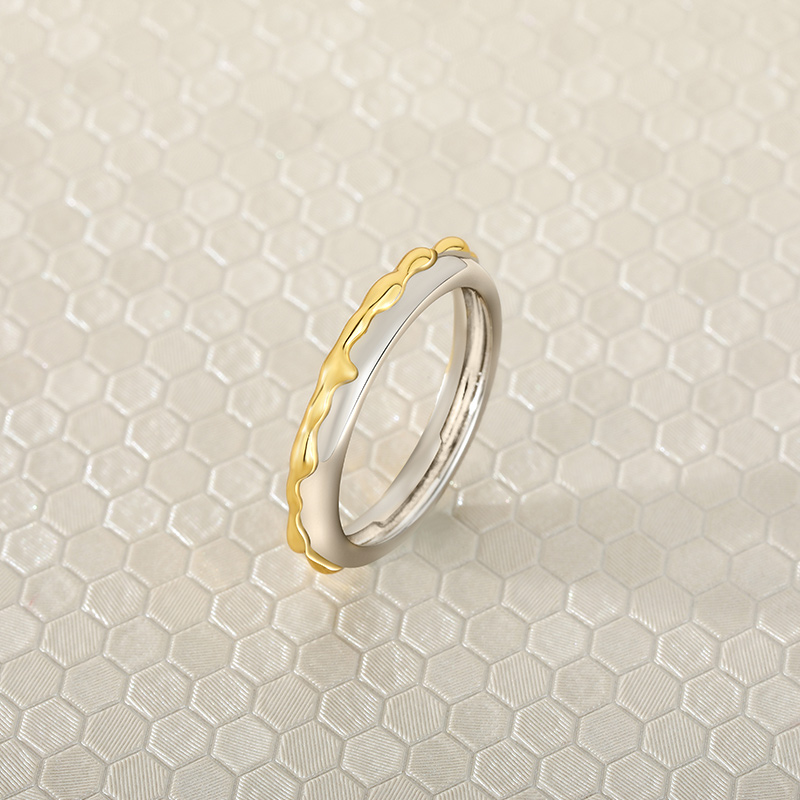 Love is like the story of the bee and the bear, sweet and warm. This meticulously crafted elegant men's wedding band is designed with a circle of honey, symbolizing sweet love, and it matches perfectly with the women's wedding ring. The sterling silver content in the wedding band not only ensures durability and comfort, but also gives it a classic luster that is both sophisticated and romantic. The two-tone design corresponds to the little cartoon bear holding a honey jar on the women's wedding ring, symbolizing infinite attachment and gentle care for the loved one.