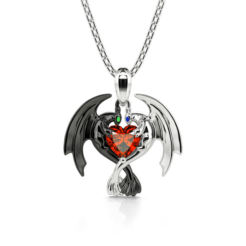 Jeulia Hug Me "Strongest Romance" Dragon Couple Heart Cut Sterling Silver Necklace