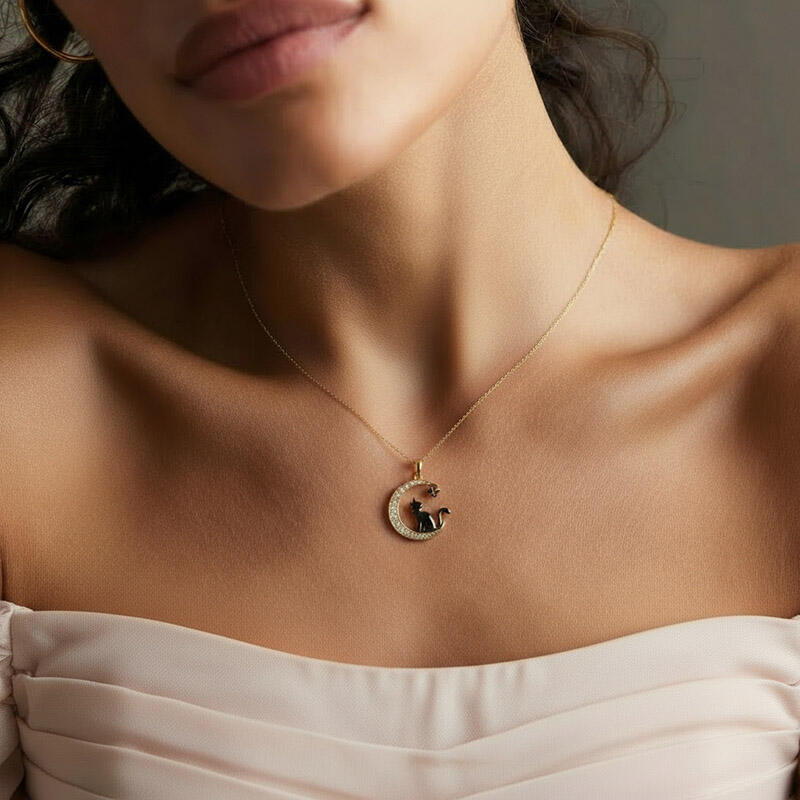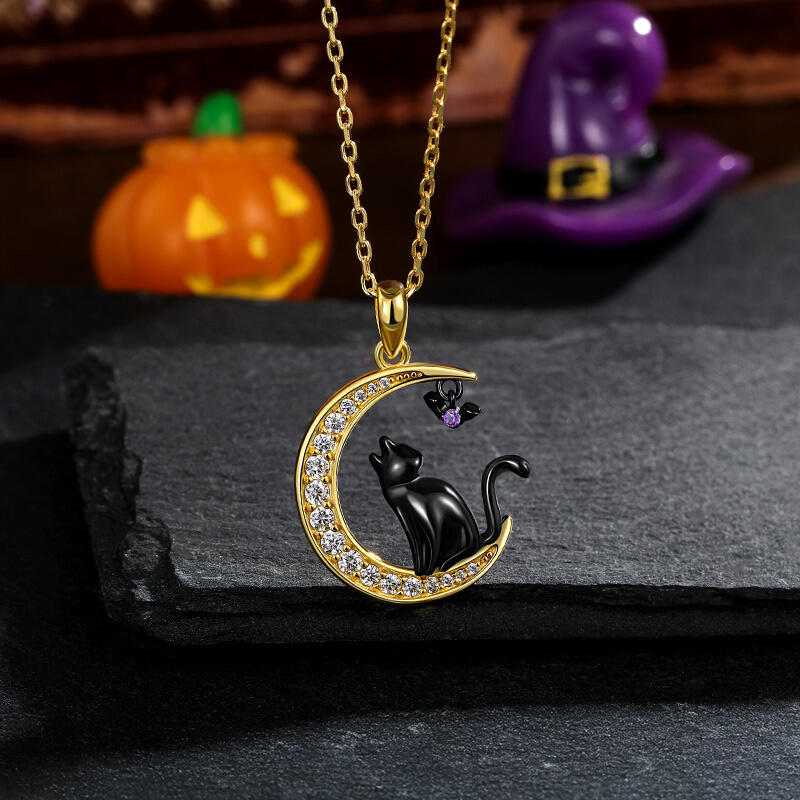 Embrace the enchanting allure of the night with the Jeulia Luna Astra Moon Black Cat and Bat Necklace. This whimsical piece features a charming black cat sitting gracefully on a crescent moon, surrounded by sparkling accents that capture the magic of twilight. A playful bat adds a touch of whimsy, adorned with a vibrant gemstone that enhances the necklace's captivating design. Crafted from high-quality materials, this moon necklace offers a unique blend of elegance and fun, making it perfect for those who love to express their individuality. Ideal for everyday wear or as a delightful gift for cat and fantasy lovers, the Luna Astra Black Cat Necklace is a charming addition to any jewelry collection. Celebrate the beauty of the night and the companionship of our feline friends with this enchanting black cat and moon necklace.