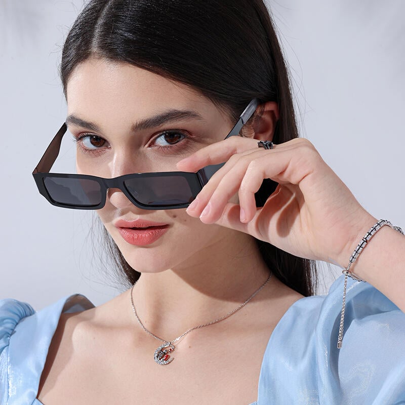 Jeulia "Perspective" Rectangle Black Metal Polarized Unisex Sunglasses