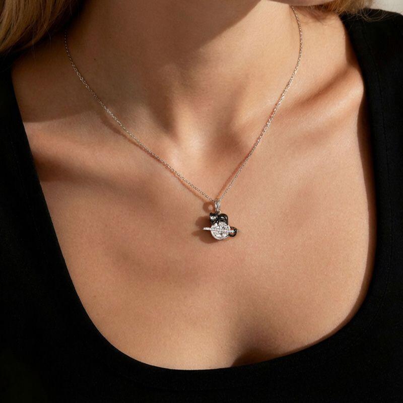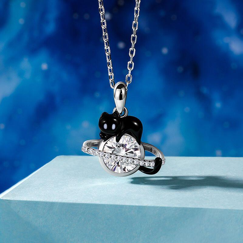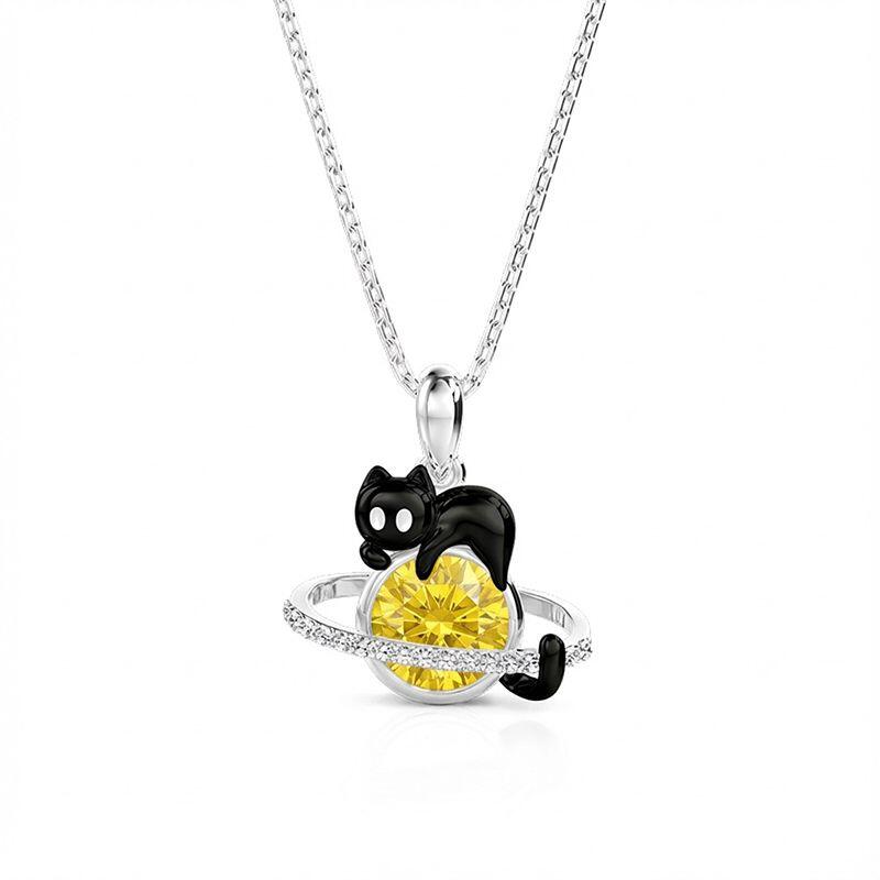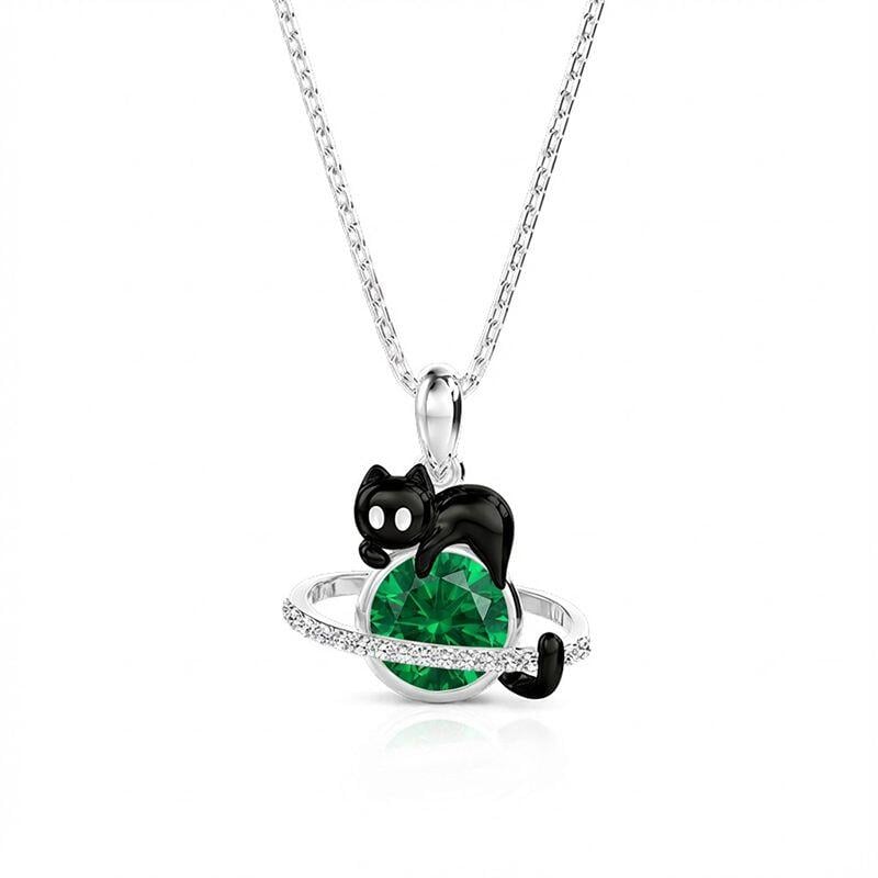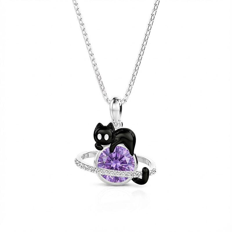 Jeulia Petland Custom Black Cat Planet Necklace With Birthstone