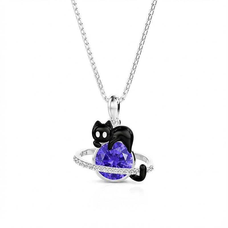 Let whimsy meet personalization with this Jeulia playful cat birthstone necklace: a sleek black cat perches atop a sparkling planet frame, where the central stone can be customized to your birthstone. Crafted in sterling silver, this black cat necklace blends feline charm and cosmic flair, letting you carry a piece of your story in every wear. Perfect for cat lovers and anyone who wants to add a personalized, out-of-this-world touch to their daily style.