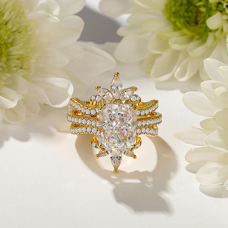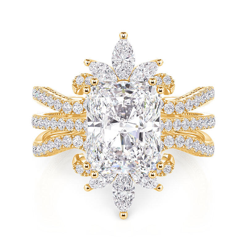 Jeulia Radiant Cut Bridal Ring Set with Symmetrical Leaf Design Enhancer