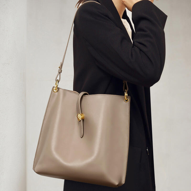 A minimalist soft leather tote bag that brings a pop of color and features a large interior with a zip pocket allow you to carry all of your essentials on the go. This bag comes with solid handles and reinforced stitching. With adjustable straps, you can quickly adjust for hanging on your arm carrying in your hand or over your shoulder. There is also a cute button fastener on the top of the bag to help keep the contents of your tote from falling out. It's not only functional but also fashionable.