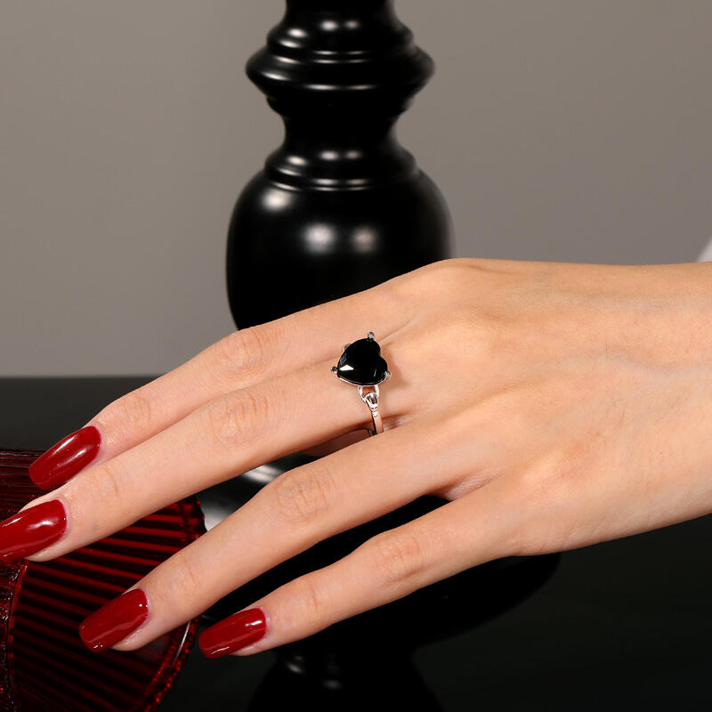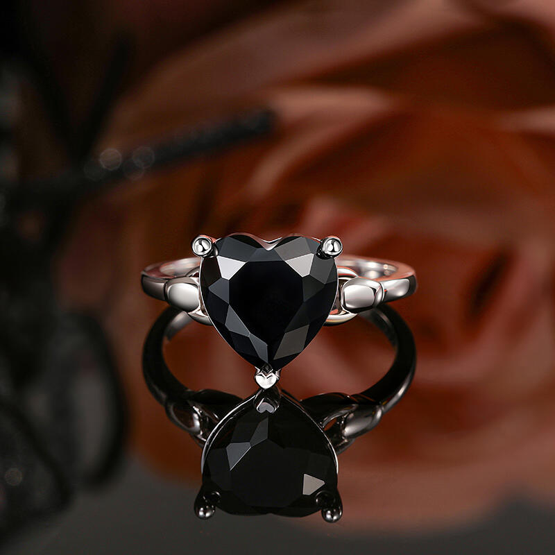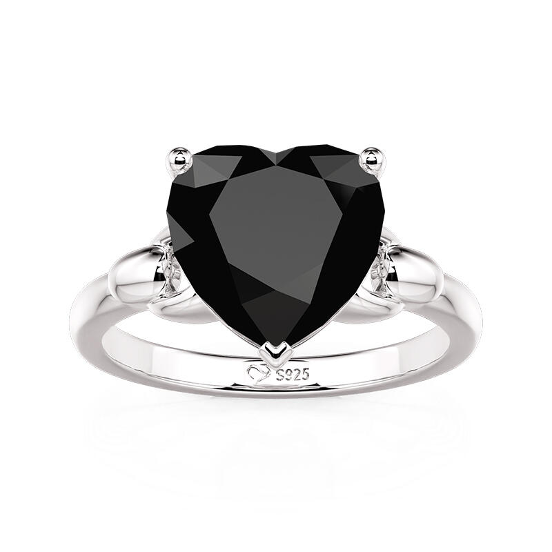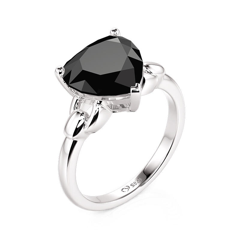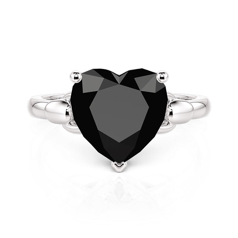 A sleek silver chain wraps the finger, its metallic weave cradling a bold black onyx heart at the crest. The contrast of jet-dark stone against polished links creates a modern tension—minimalist yet magnetic. This Jeulia Black Heart Shaped Solitaire Engagement Ring the perfect choice for those who wear their heart not on their sleeve, but as a statement of elegant rebellion.