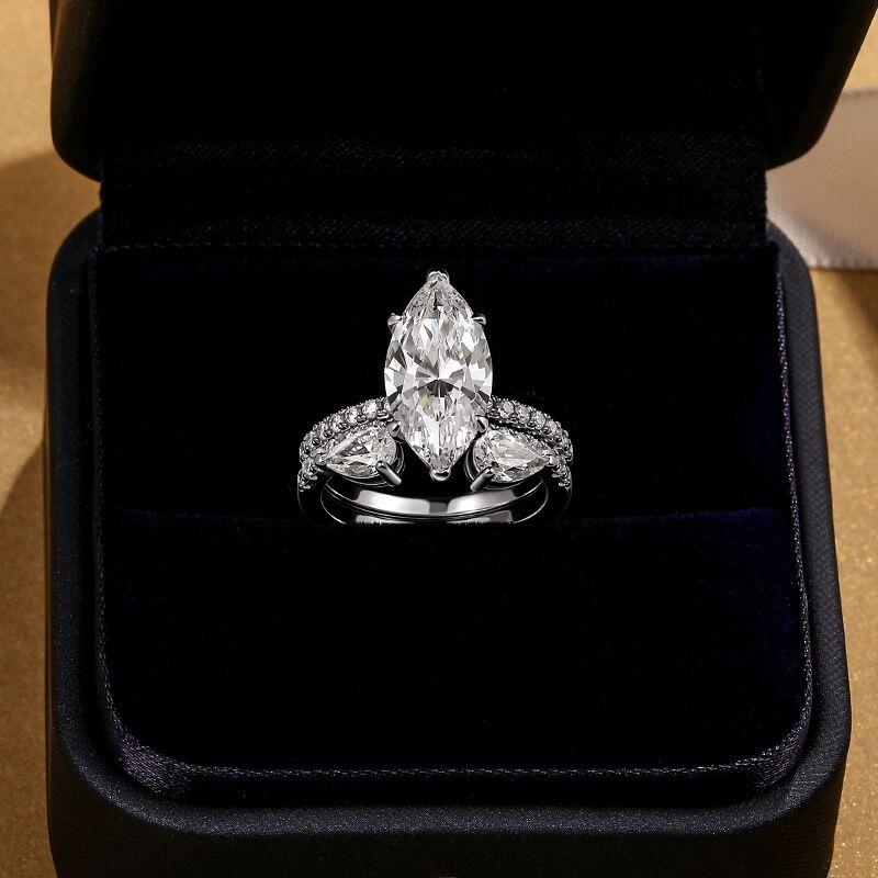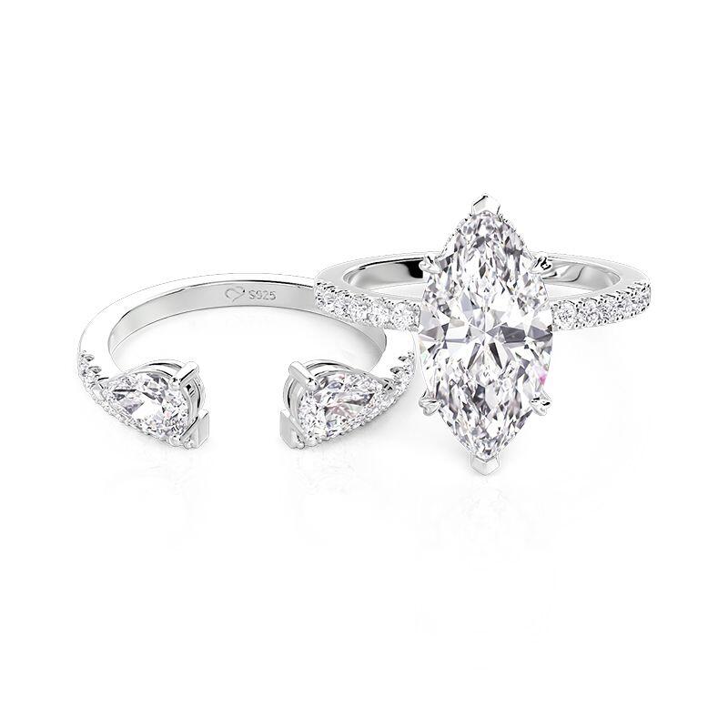 Jeulia Stackable Marquise Bridal Set with Pavé Accents 2PCS