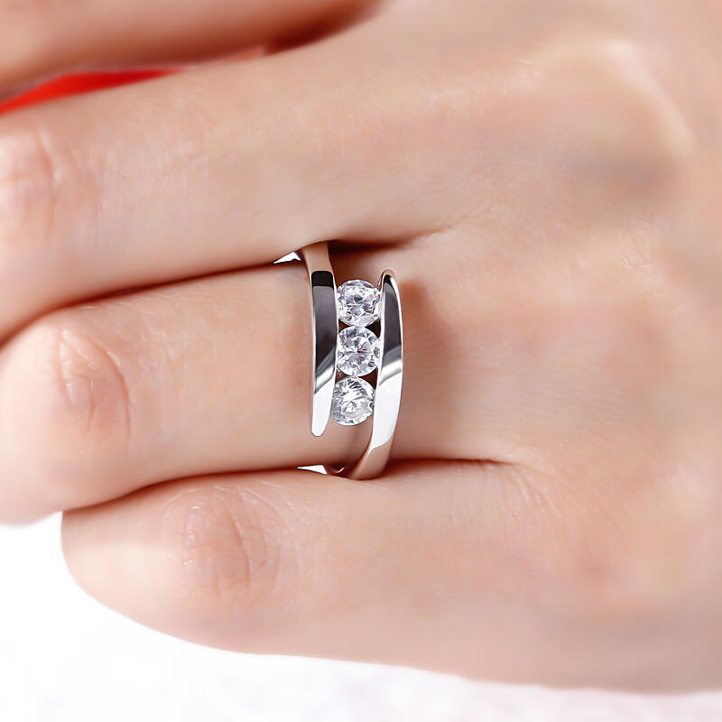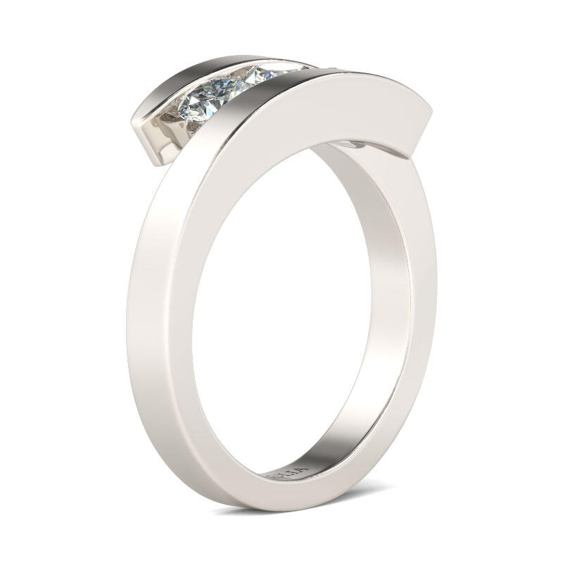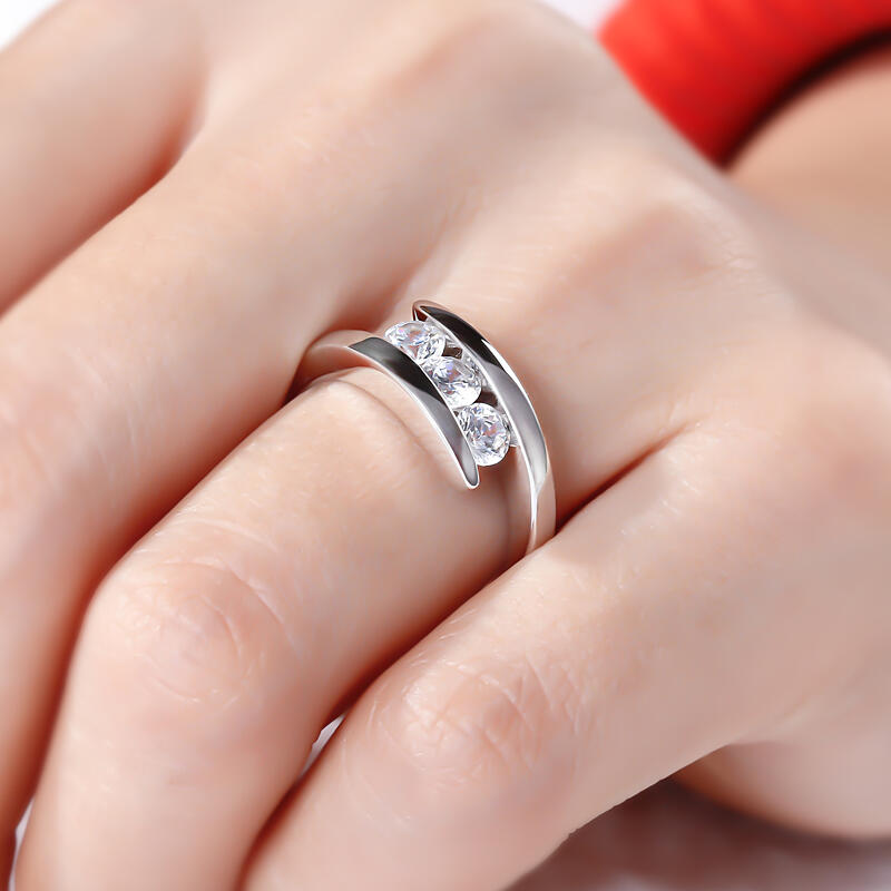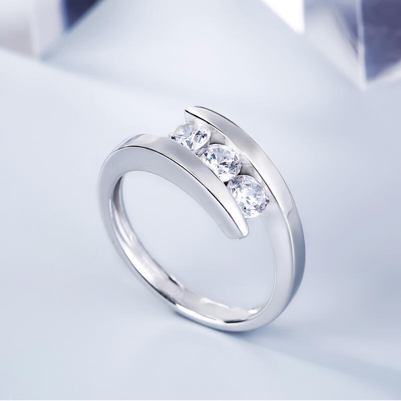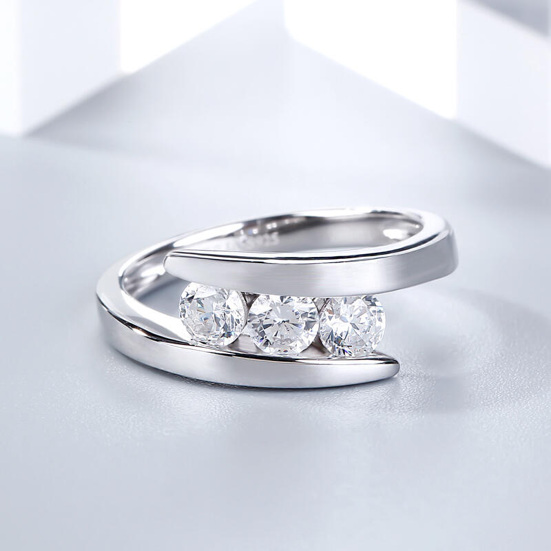 Jeulia Tension Three Stone Round Cut Sterling Silver Ring