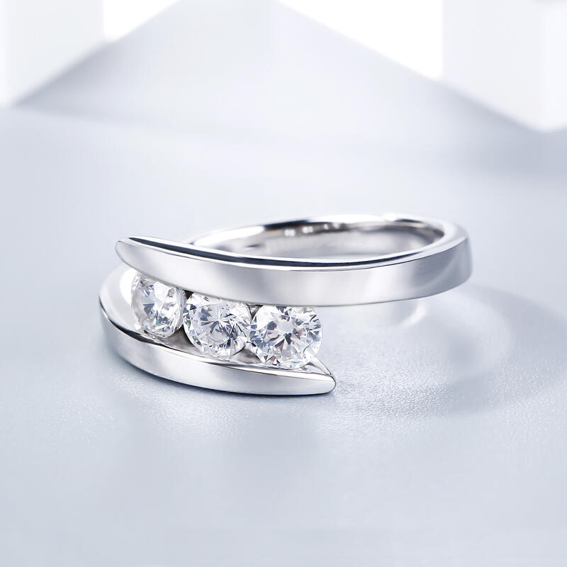 Celebrate your past, present and future with this delightful three stone ring. Crafted in sterling silver, this bypass-design band features three shimmering round stones. It's a thoughtful, meaningful look she'll adore. Polished to a brilliant shine, this ring honors your loving commitment to each other.