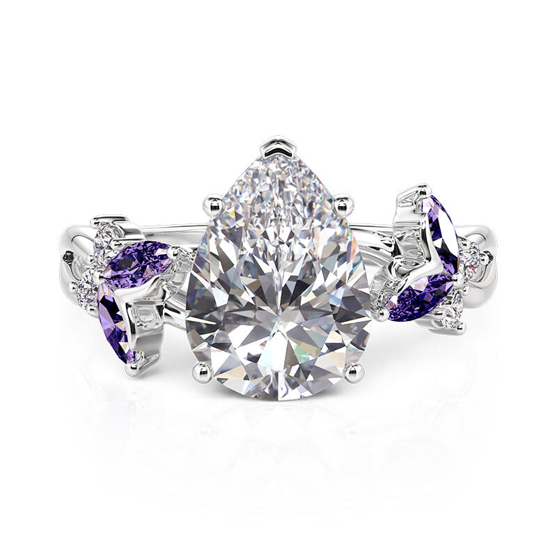 Jeulia Twisted Purple Butterfly Pear Shaped Wedding Ring