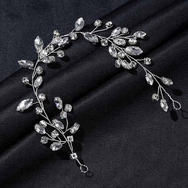 This enchanting crystle hairpiece bridal vine headband adds a touch of whimsical elegance to your wedding hairstyle.Delicately crafted with silver-plated branches and shimmering crystals, it features an exquisite design that resembles nature’s beauty, with various shapes and sizes of crystals creating a harmonious effect.This versatile piece can be worn intertwined with your hair or as a stunning adornment to an updo.