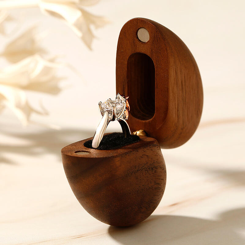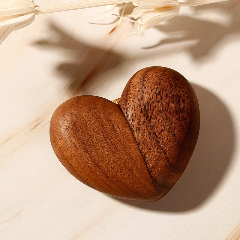 Jeulia Vintage Wooden Heart Shape Magnet Ring Box