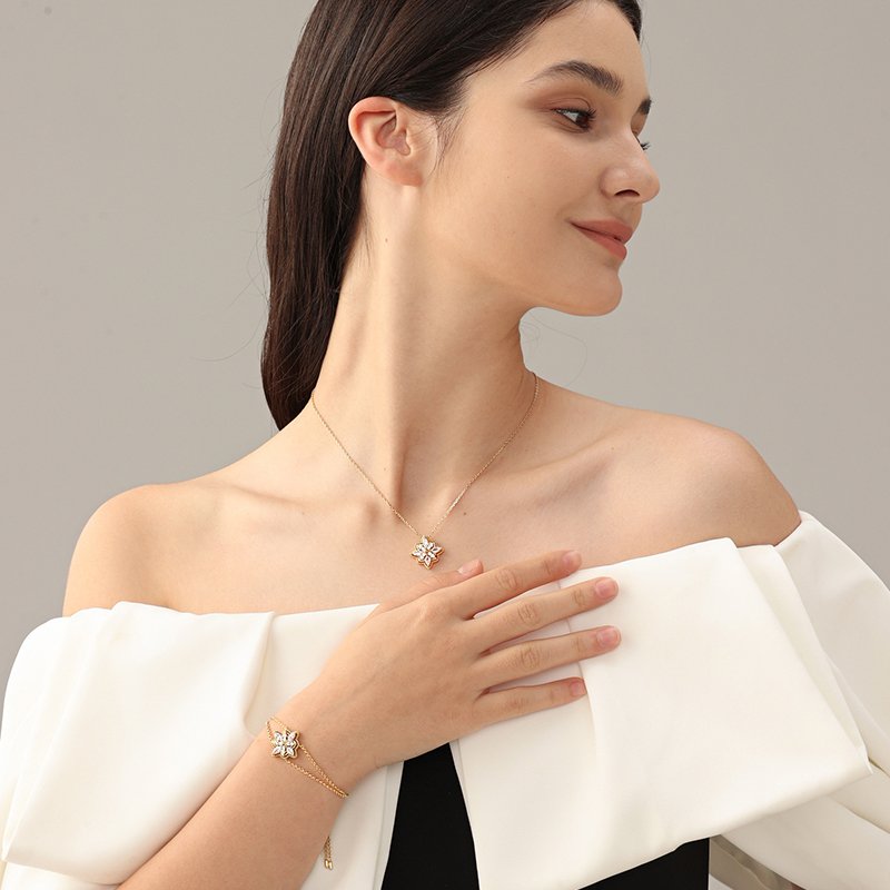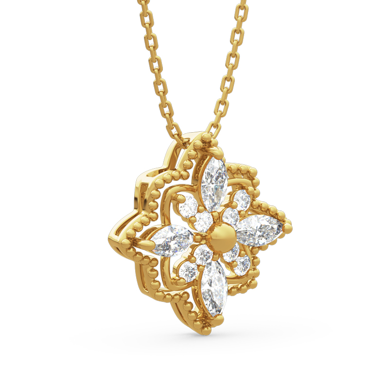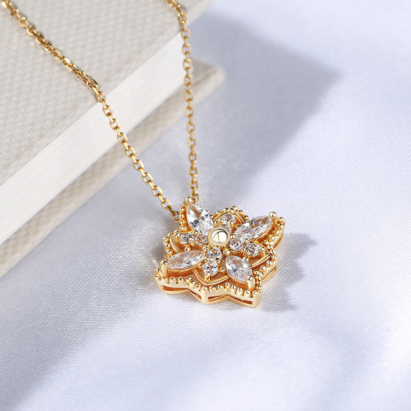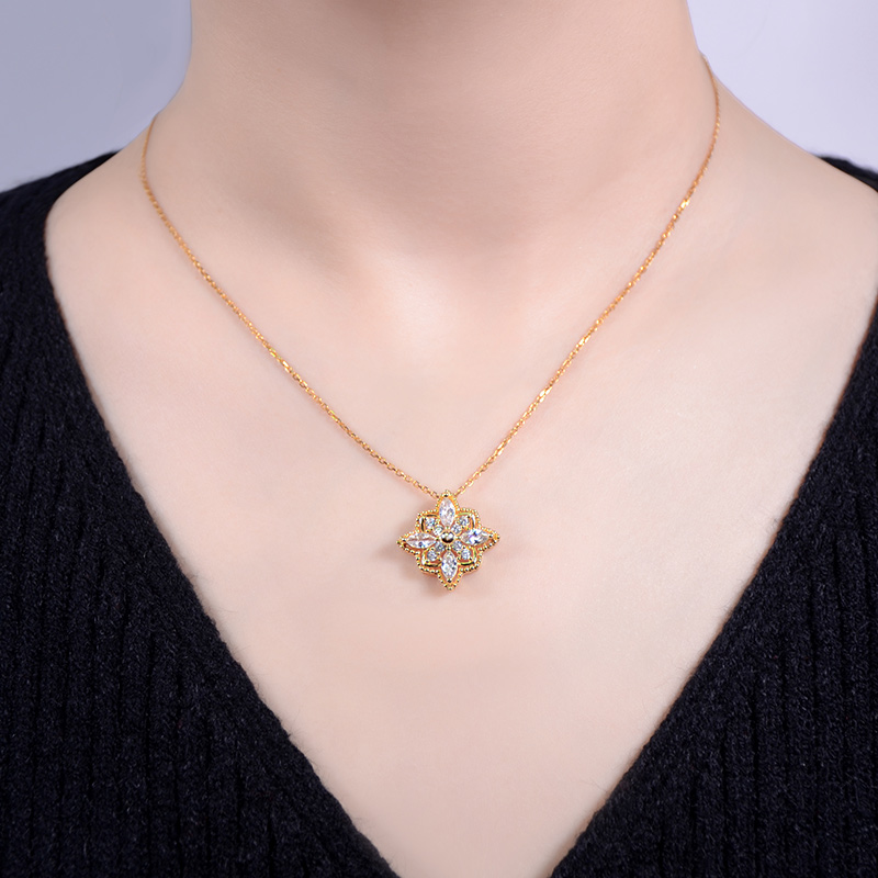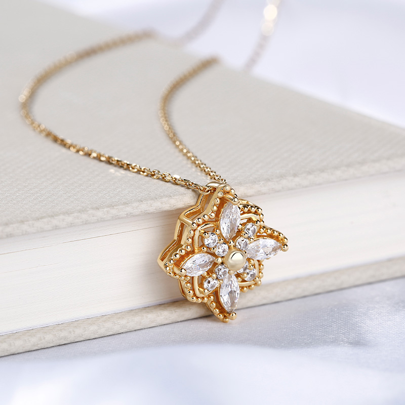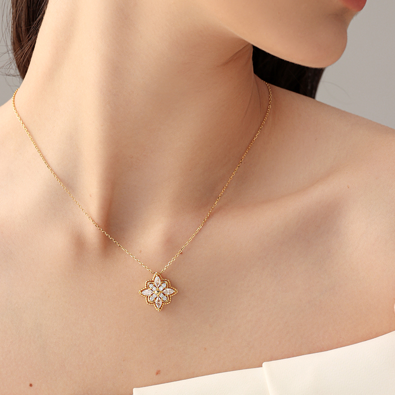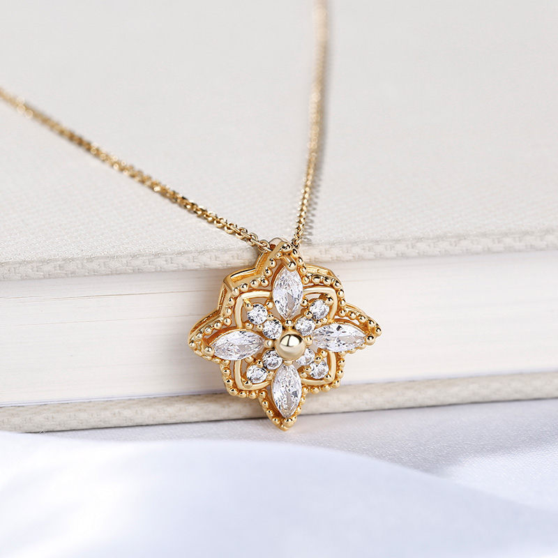 Jeulia Milgrain Floral Sterling Silver Necklace
