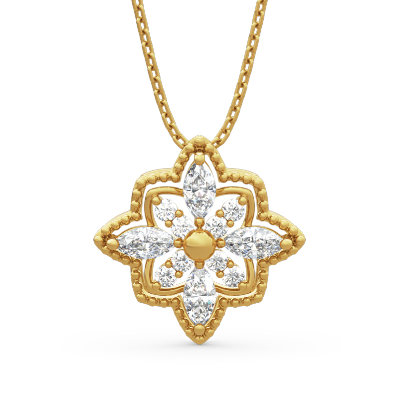 Treat her to a beautiful floral necklace that never fades. This elegant necklace offers a delicate, feminine appearance that she is certain to appreciate. Crafted in sterling silver, this necklece showcases a unique floral design, and the milgrain detailing along the pendant's edge adds depth and dimension to this elegant design. Wherever she goes, this necklace is a sweet reminder of your love and care next to her heart.