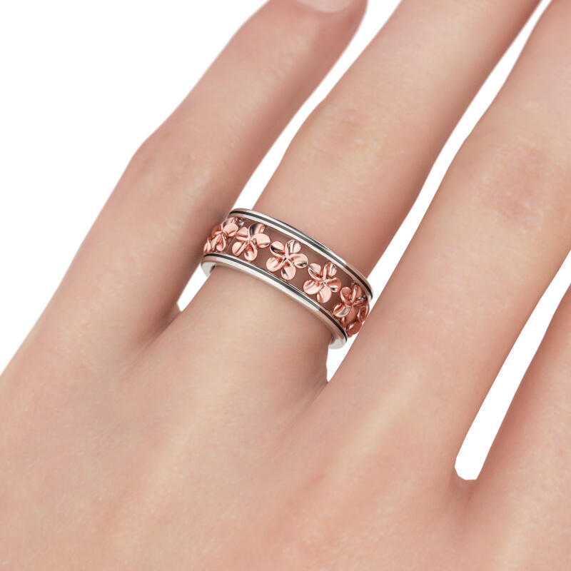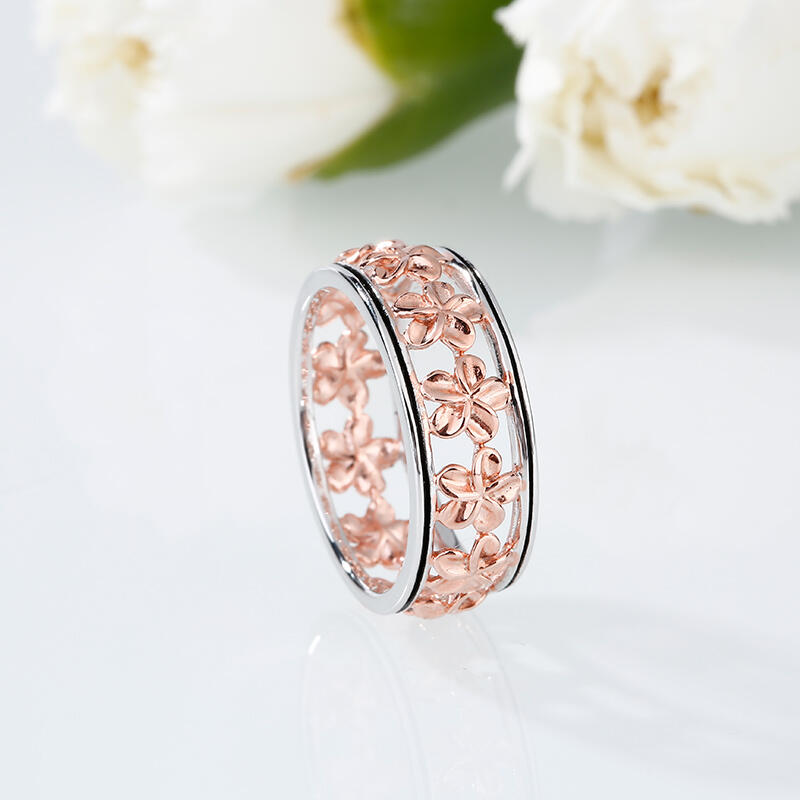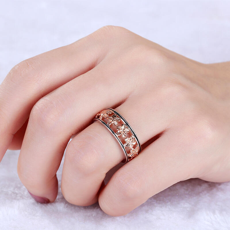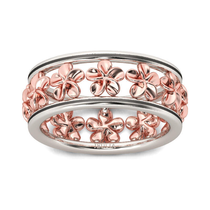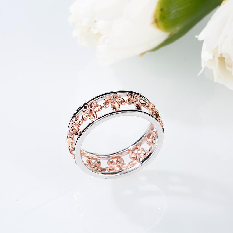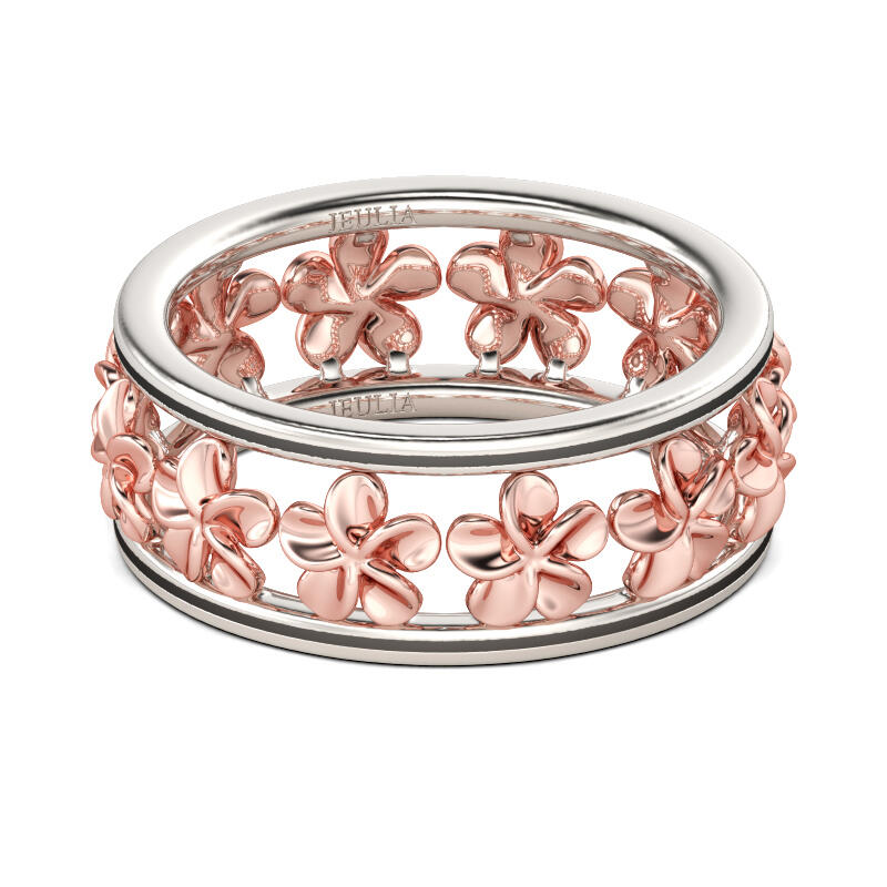 Jeulia Two Tone Flower Sterling Silver Women's Band